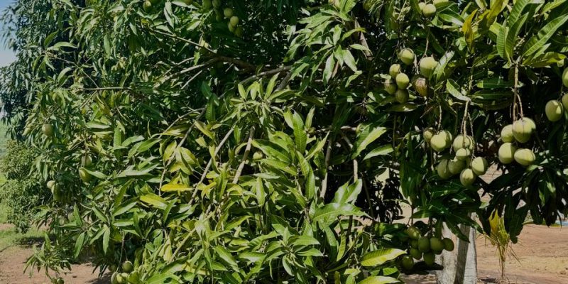 Mais adiante, a fazenda também investiu em uma seção dedicada à produção de frutas tropicais, como maracujá, acabate, manga, abacaxi, pitaya, papaia e banana. As árvores jovens estão a florescer e, em breve, essas frutas estarão prontas para o mercado, embora algumas já estejam a ser comercializas, tal como o maracujá e a manga. A escolha por frutas tropicais visa não só diversificar a produção, mas também agregar valor ao negócio, aproveitando a alta demanda por esses produtos.